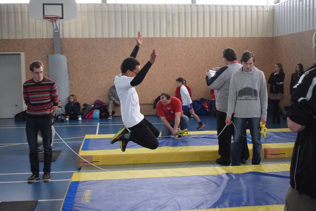 6 jeunes sont venus pour , une fois n'est pas coutume, participer à un triathlon, avec 30m plat, lancer de medecine ball et saut en longueur.