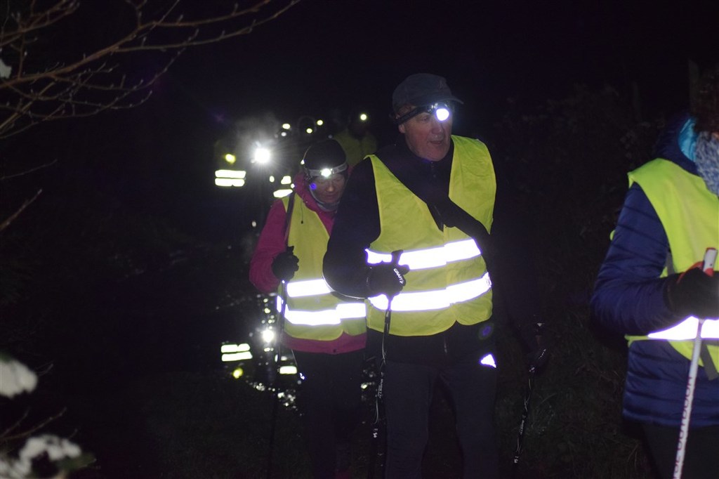 Nous avons donc parcouru 14.5 km hier soir dans la nuit Luynoise , on aurait pu croire à une procession de mineurs même si tous étaient majeurs , et les quelques automobilistes rencontrés y pensent encore . Un ciel étoilé et orangé par endroits faisait office de lampe de chevet tandis que par moments des flocs boueux et parfois humides nous ramenaient brutalement sur terre .